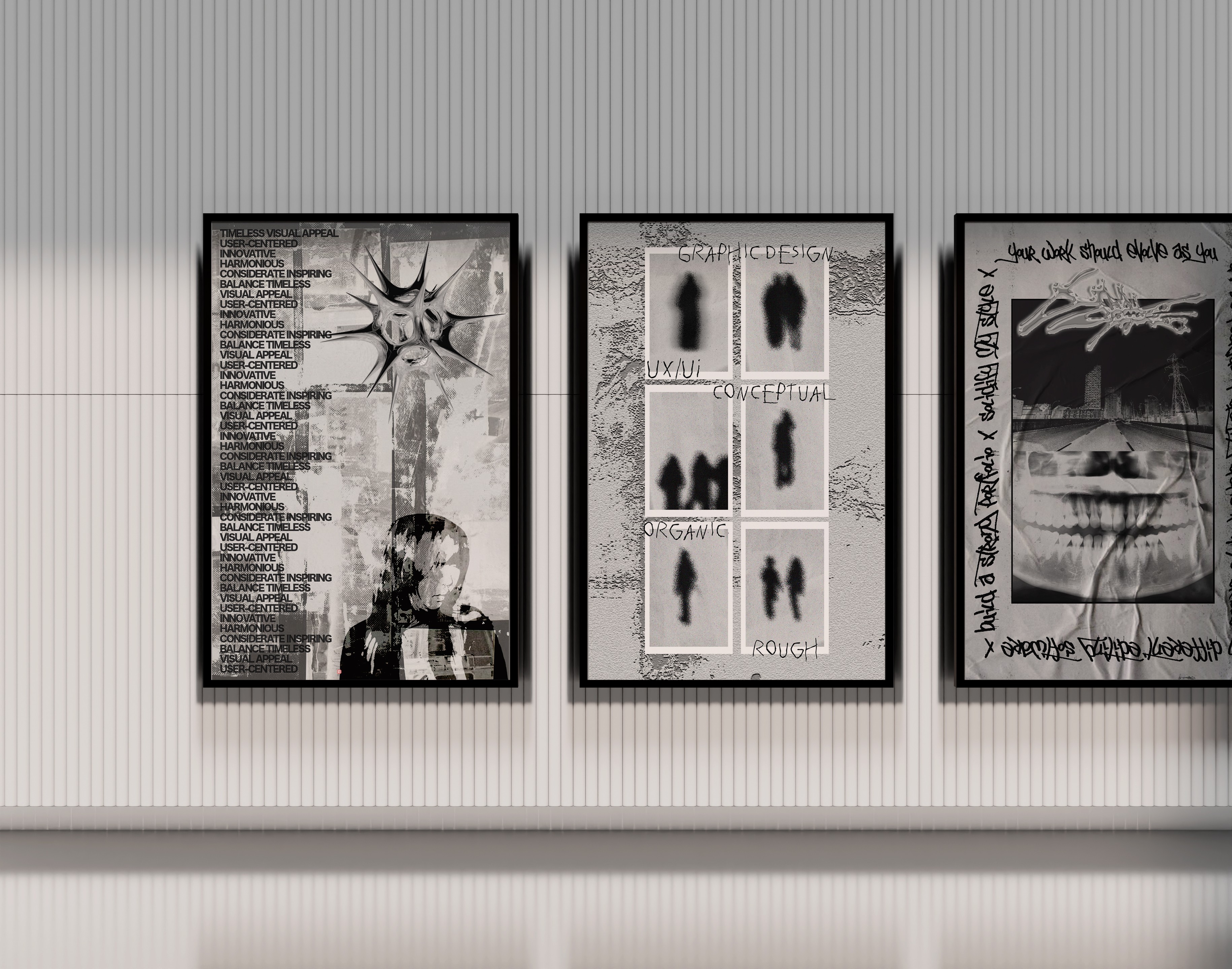 A triptych type poster project presenting my personal aesthetic and views on design.