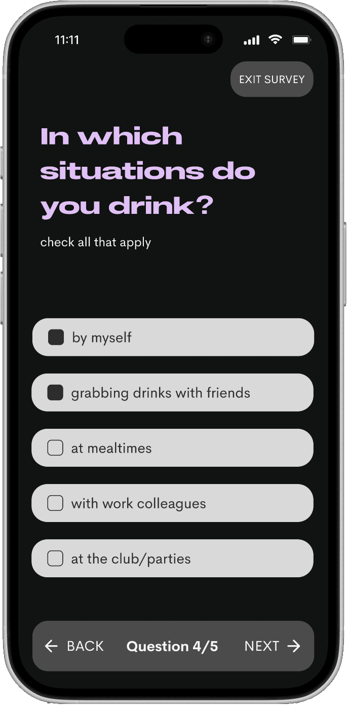 We conducted in-depth interviews with university students to understand their drinking behaviours, challenges, and needs.